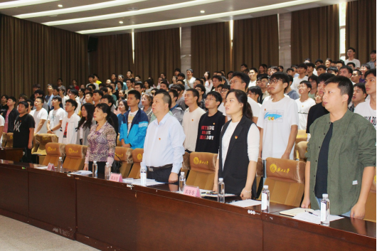 仪式伊始,学院党委书记戴永恒以“不忘初心使命,坚定理想信念,积极投身党的事业伟大工程”为题,认真接受党组织的考验,以实现中华民族伟大复兴为己任,增强做中国人的志气、骨气、底气。