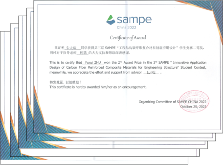 近日,在江苏苏州召开的“SAMPE(国际先进材料与制造工程学会)中国2022年会”上,第三届“工程结构碳纤维复合材料创新应用设计”学生竞赛结果公布并颁奖。万象城官网研究生朱夫瑞、姚剑伦、李友林、邱明东、张闰丹组队参赛(指导老师:柯璐助理教授),提交的作品“基于新型胶黏剂的碳纤维复合材料(CFRP)加固钢结构桥梁的创新应用设计”以并列第四的总成绩获得大赛二等奖。