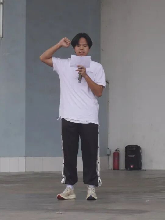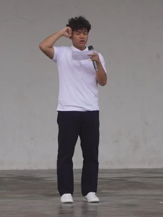 致辞环节结束后,裁判员代表陈俊文与运动员代表陈康乐先后登台,庄严宣誓。誓言既毕,余波副院长随即面向全场,高声宣布运动会开幕。洪亮的声音响彻全场,正式为这场青春与激情的角逐拉开大幕。