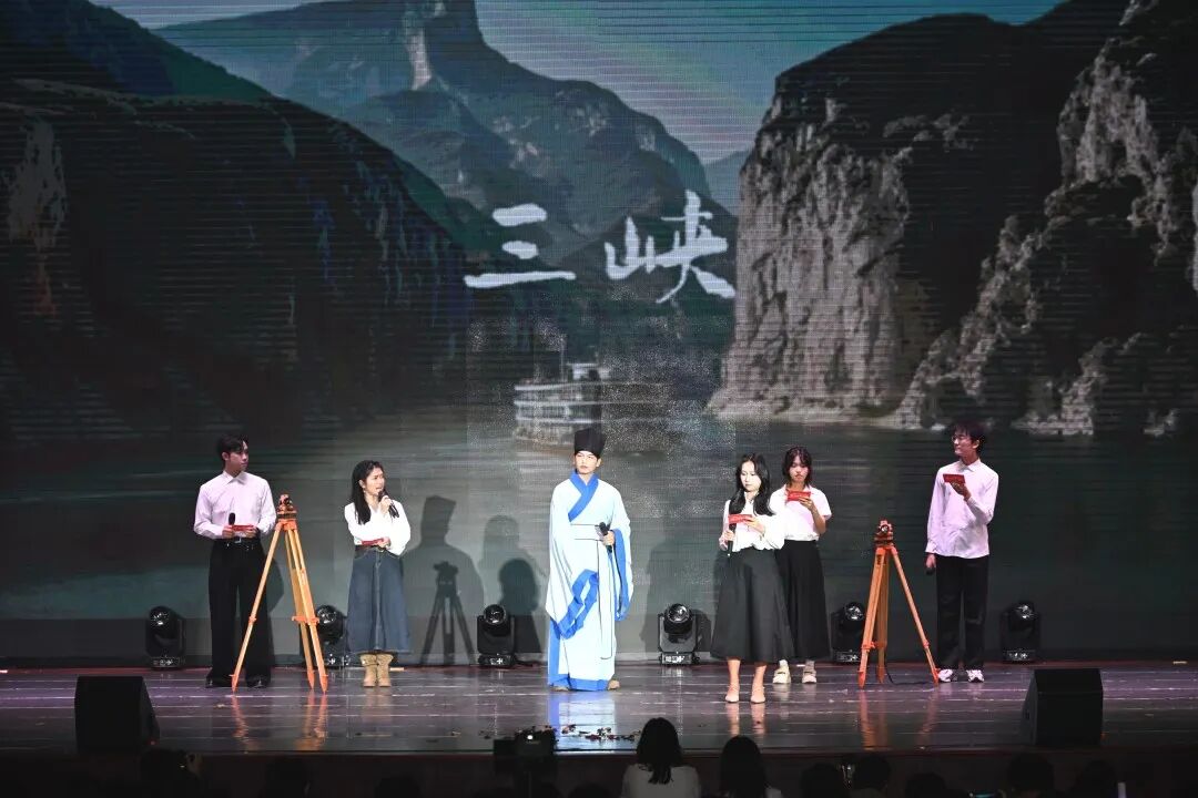 古籍为媒,匠心传承。情景剧《水经注》堪称整场晚会的亮点之作,通过生动的情景演绎溯源土木文化脉络,将古籍中的千年智慧与匠艺精神巧妙融合,尽显土木学科的深厚底蕴与文化魅力。